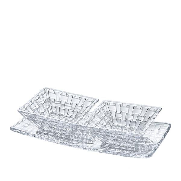 Set İçeriği; Servis Tabağı: 1 adet Kare Kase: 2 adet Servis Tabağı Uzunluğu: 28 cm Servis Tabağı Genişliği: 14 cm Kare Kase Uzunluğu: 12 cm İçerik: %100 Cam